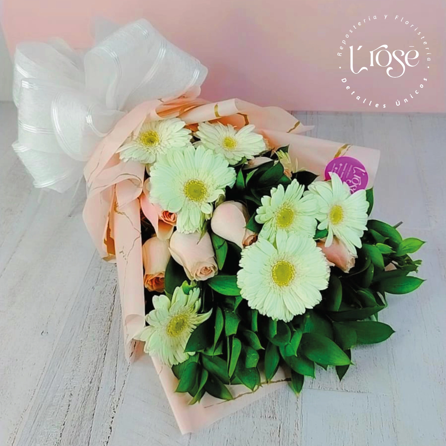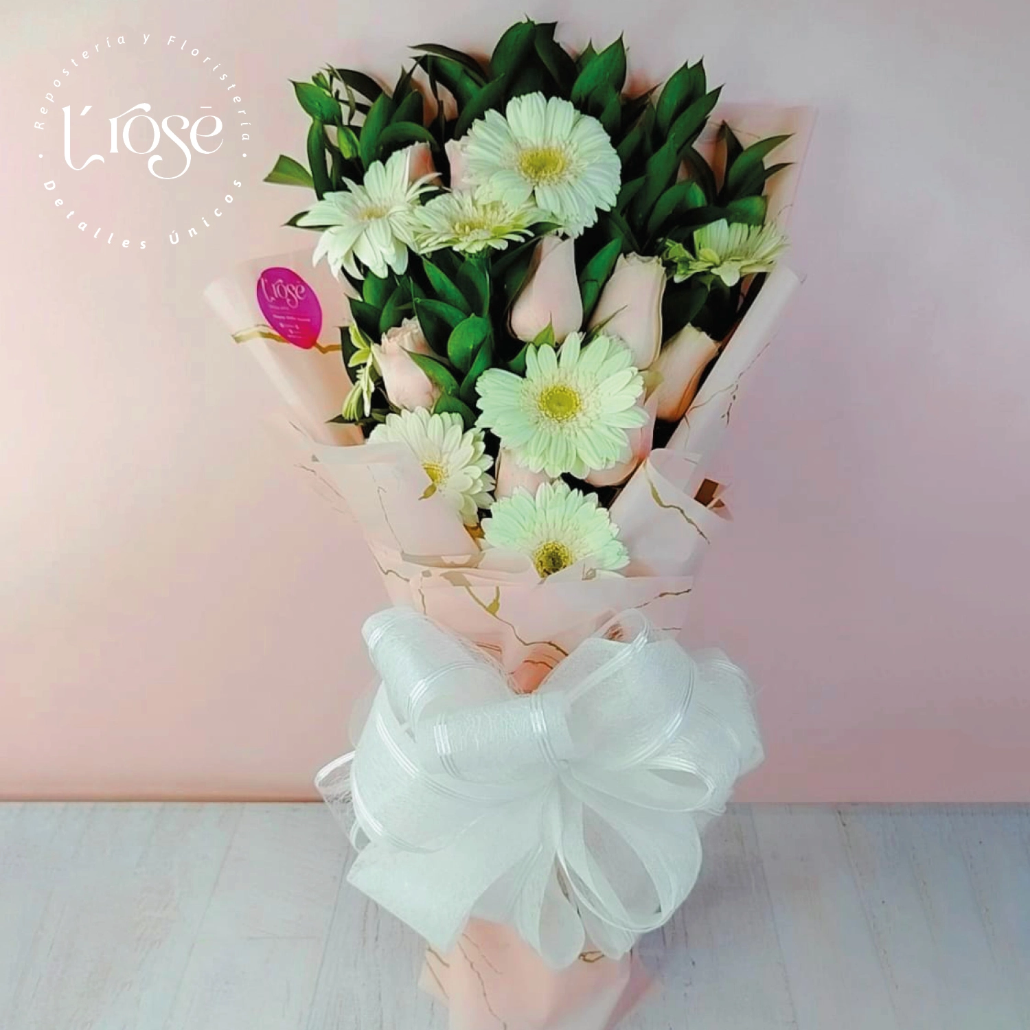 Ramillete de 12 rosas y 8 gerberas