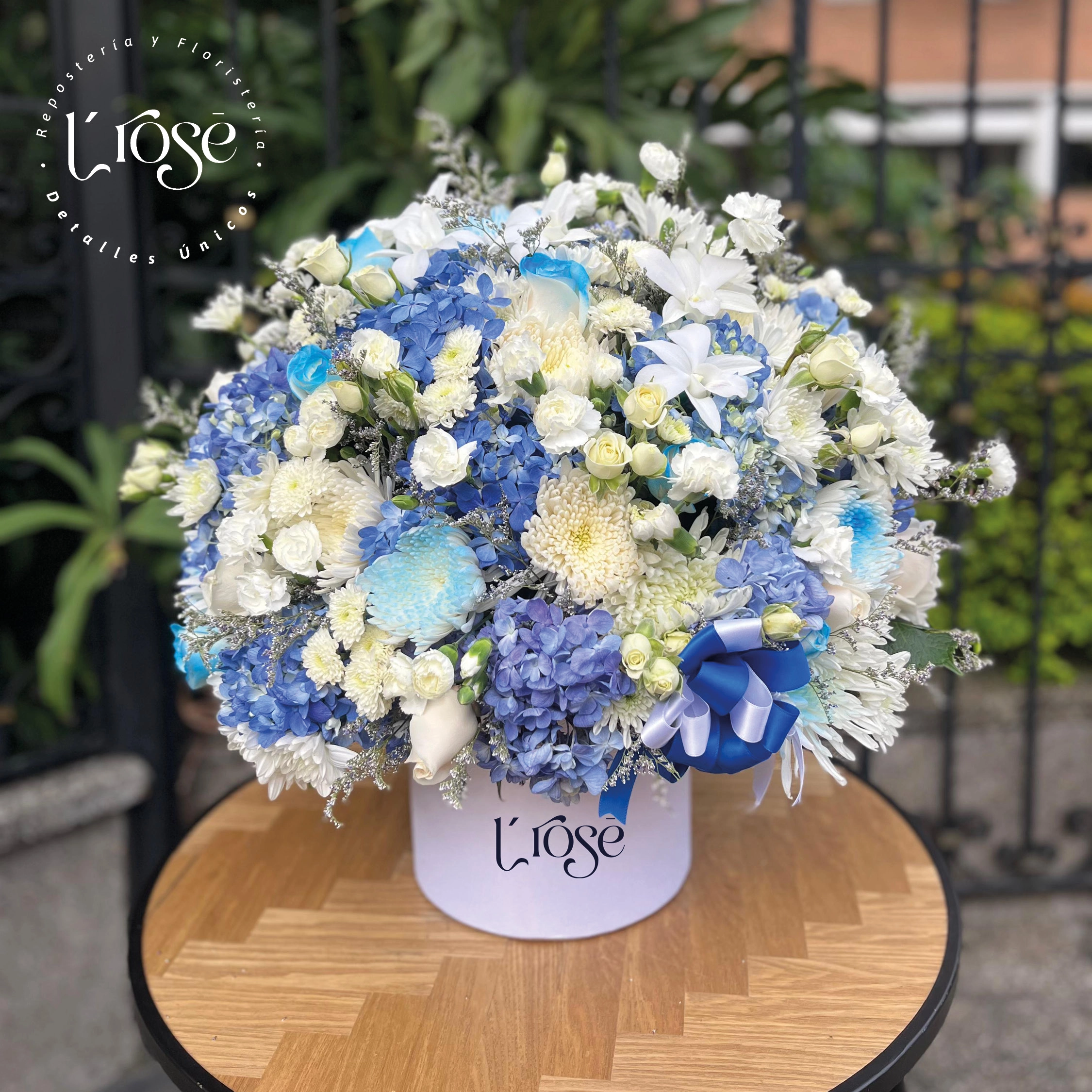 Caja cilindro con variedad de flores
