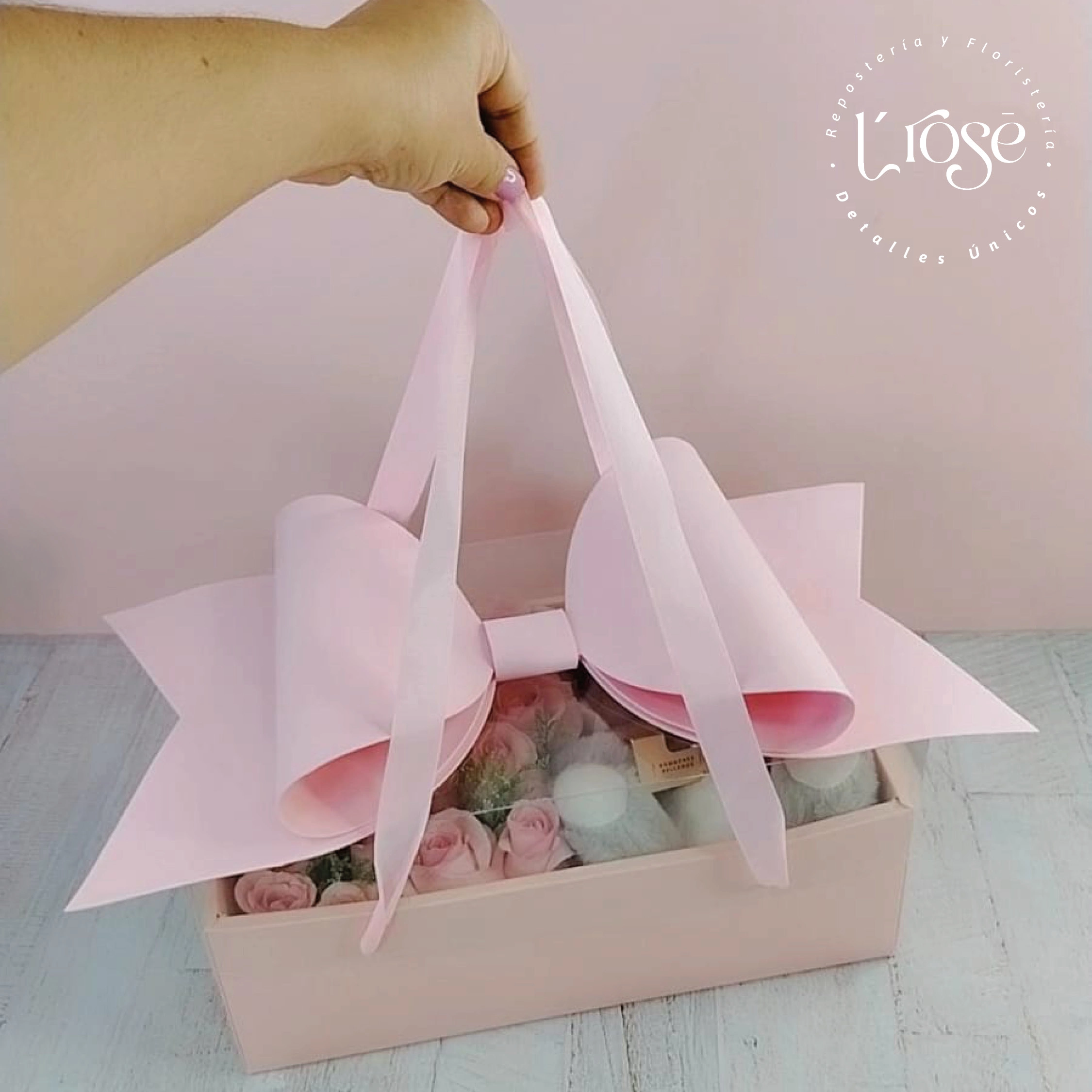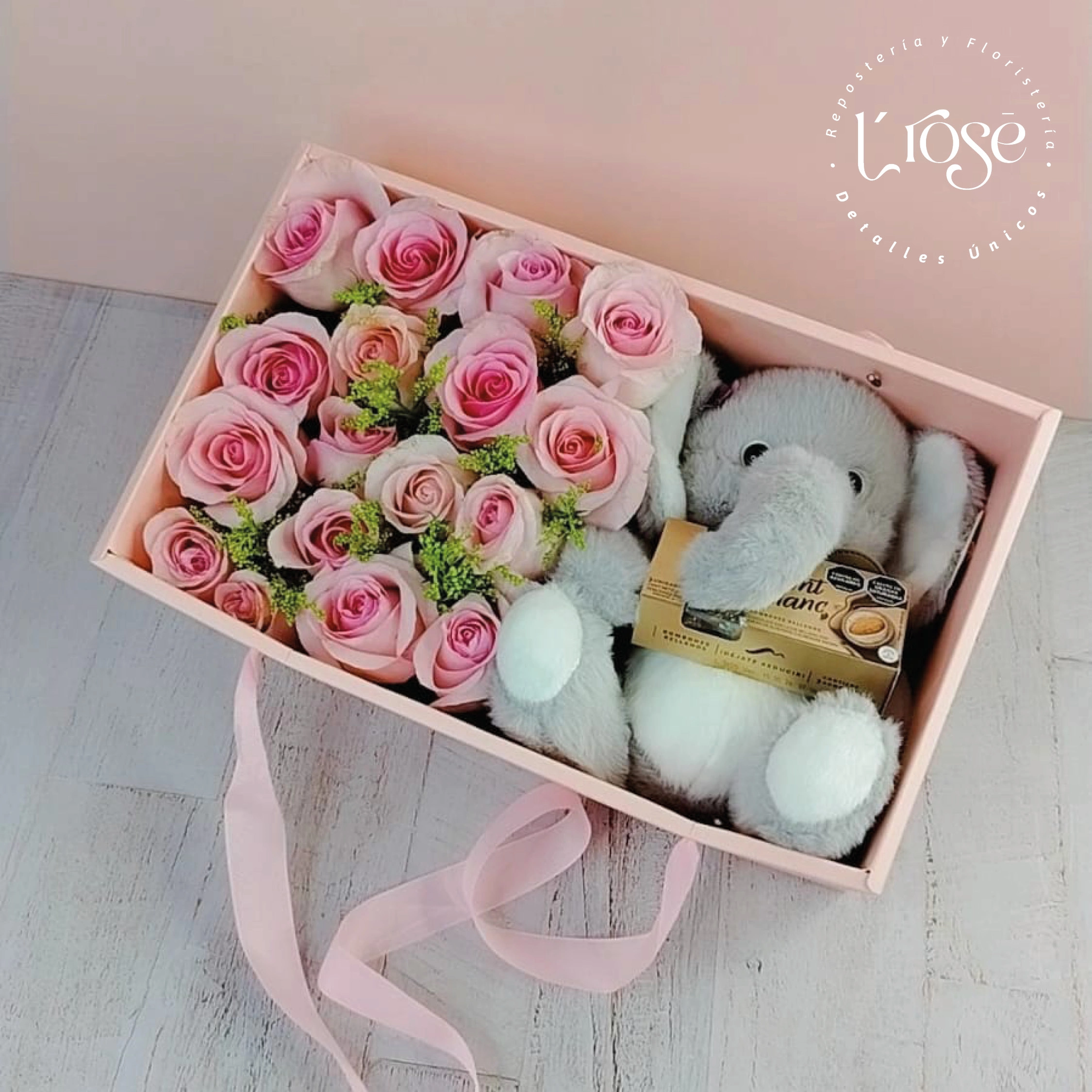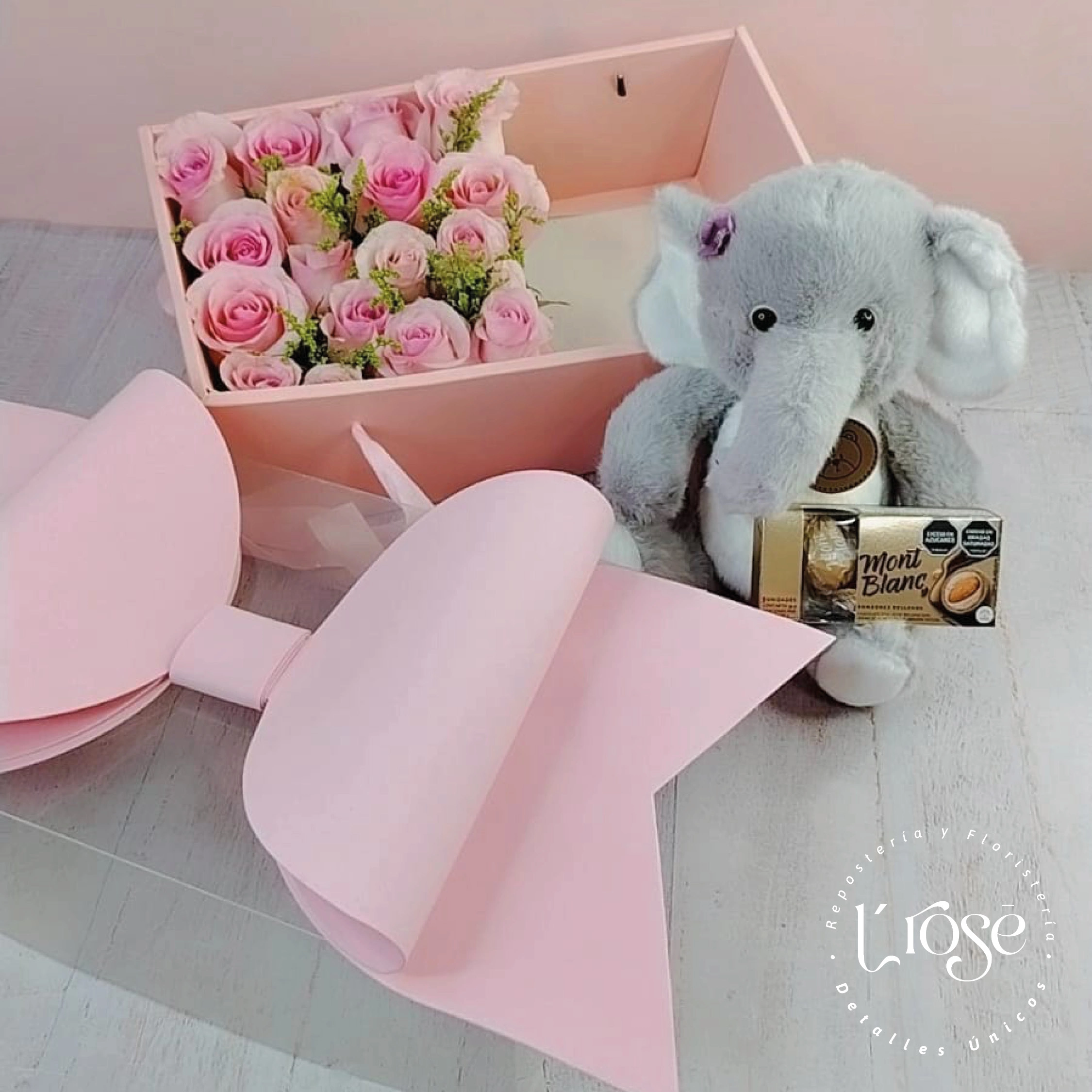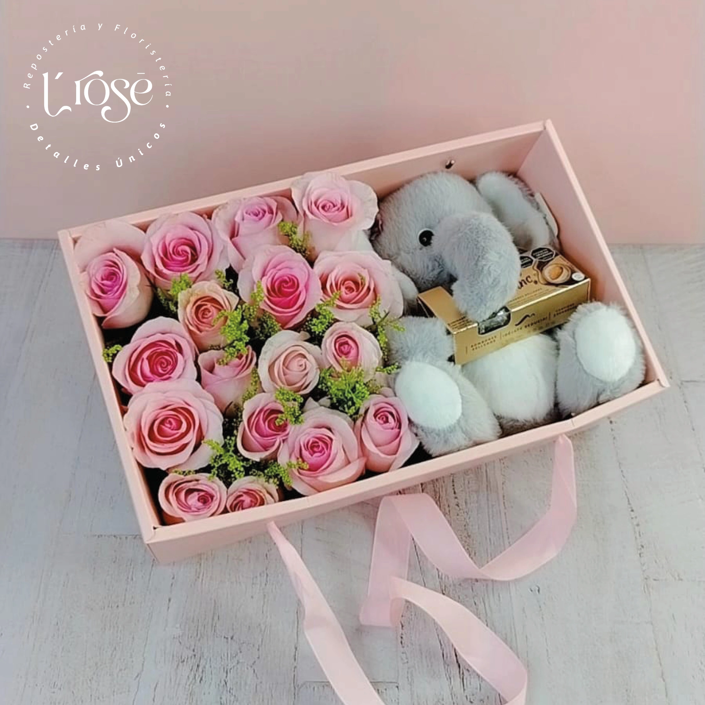 #511 Caja con rosas, peluche y chocolates