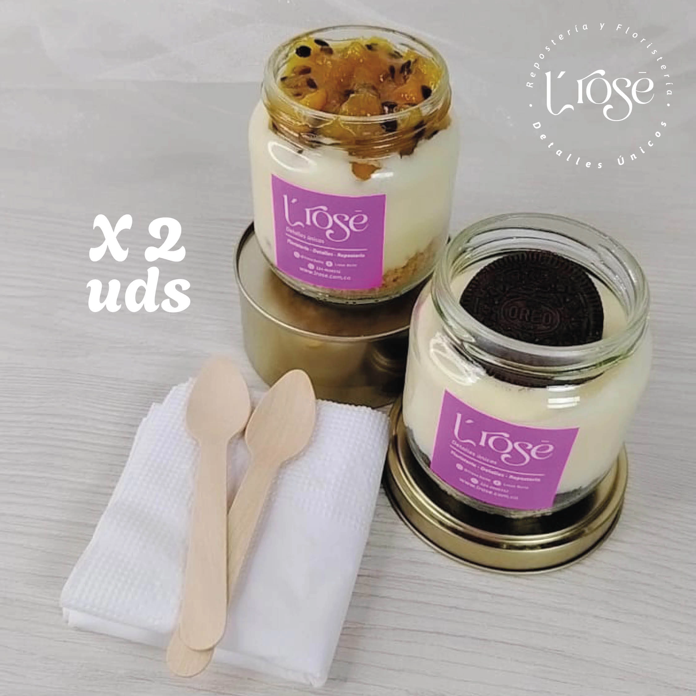 Delicioso cheesecake artesanal en presentación x 2 unidades, ideal para antojar, regalar o acompañar un desayuno especial. Dos sabores irresistibles para elegir: