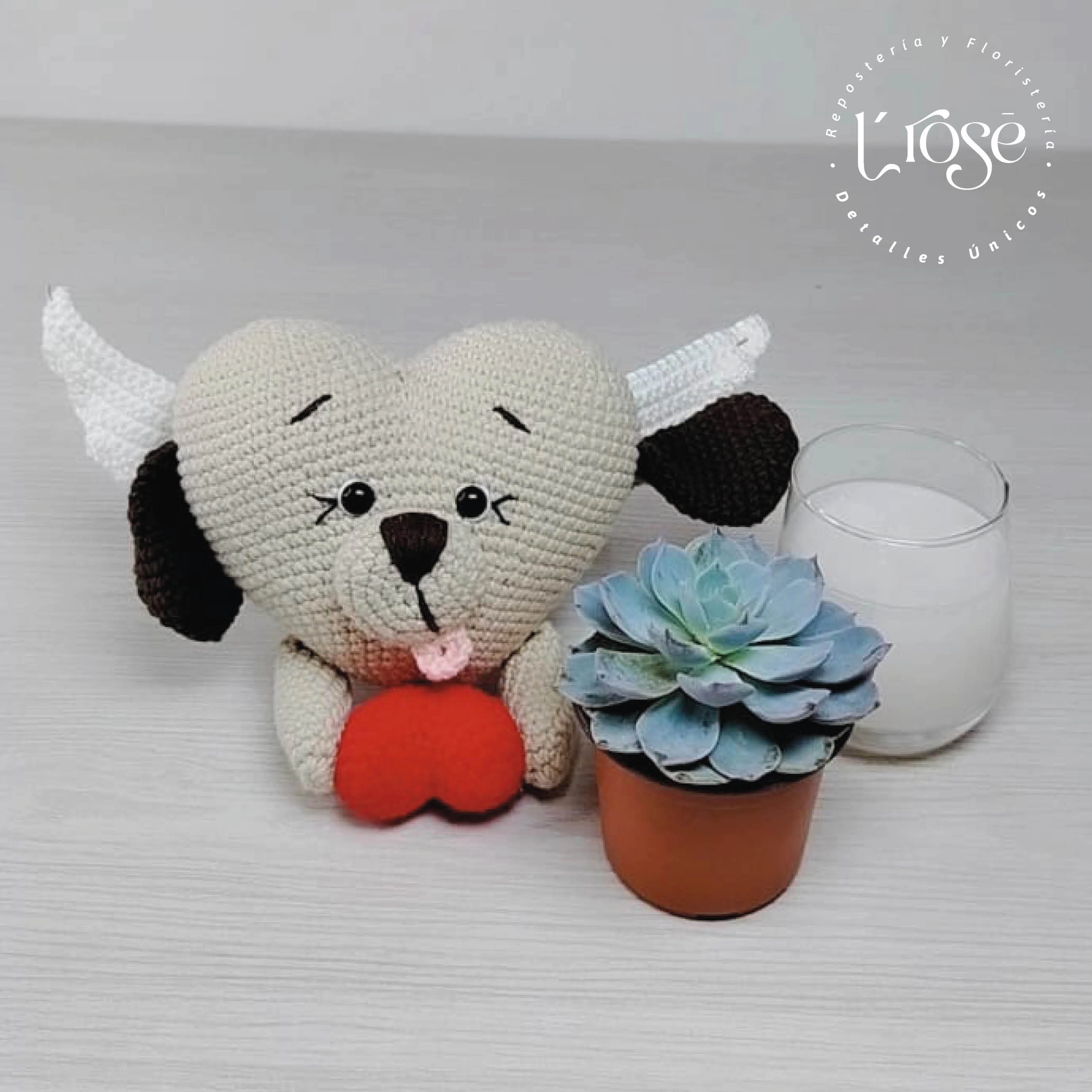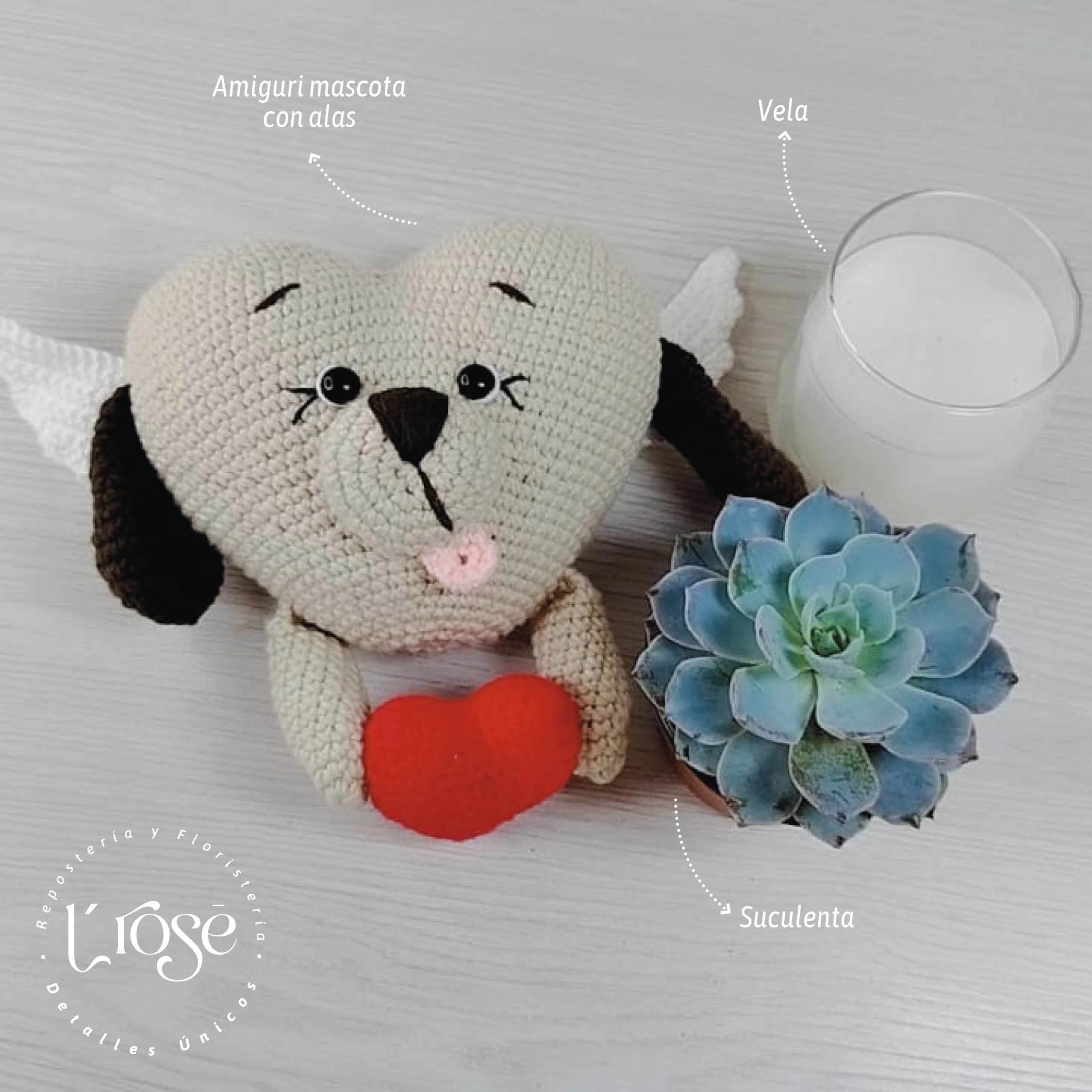 🐾 Amigurumi en forma de corazón con alas, símbolo de amor eterno y protección.