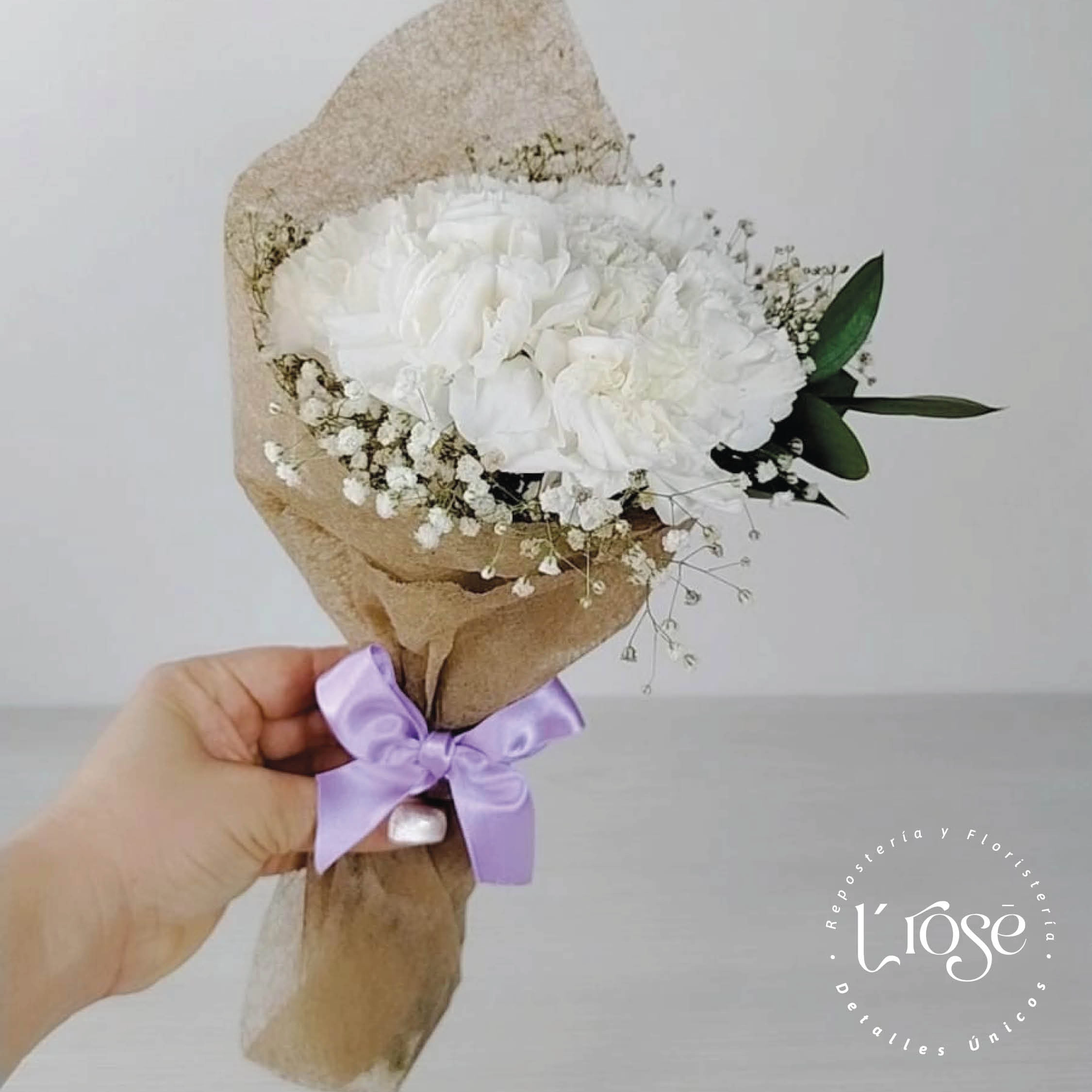 🌸 Mini Bouquet floral de claveles blancos y yisofilia
