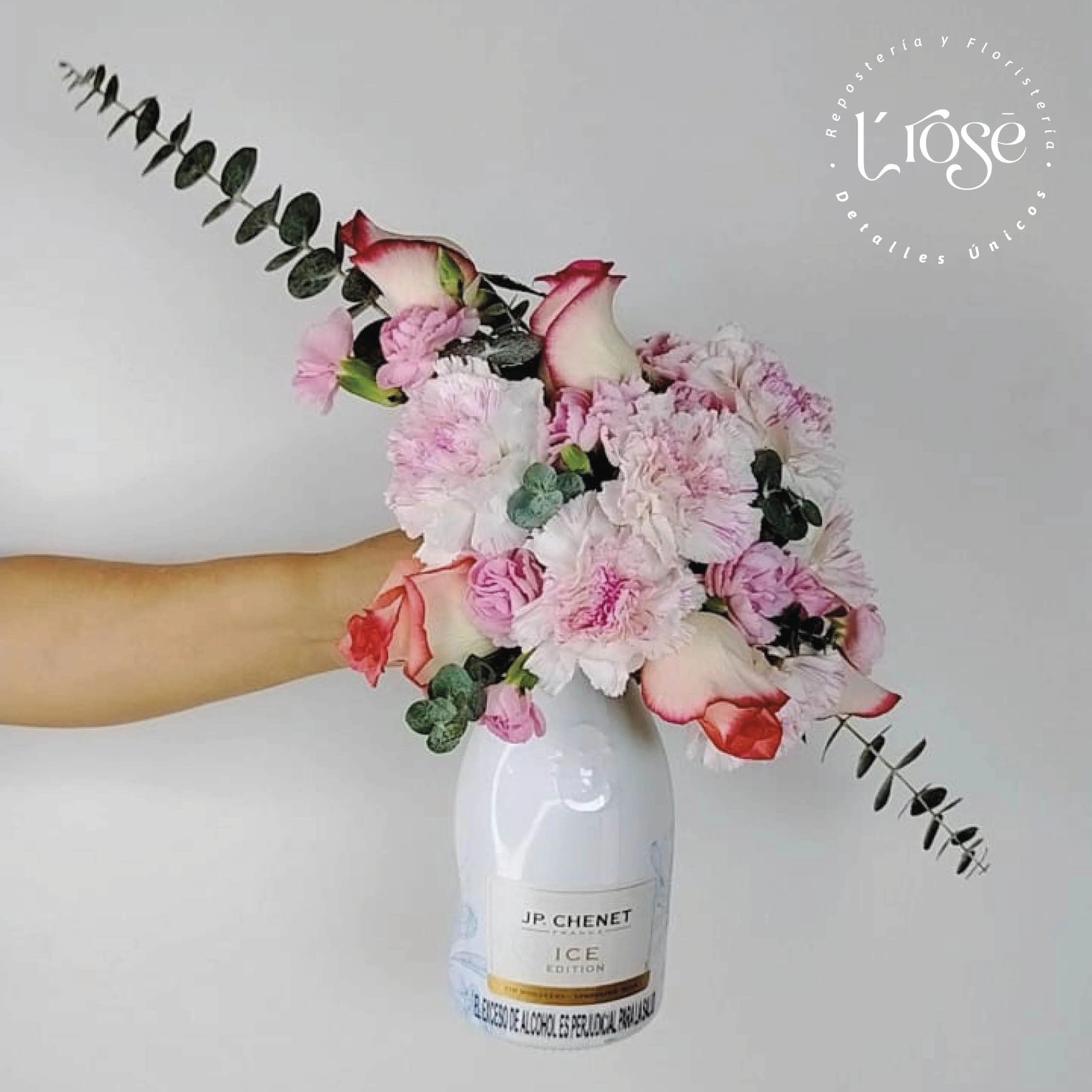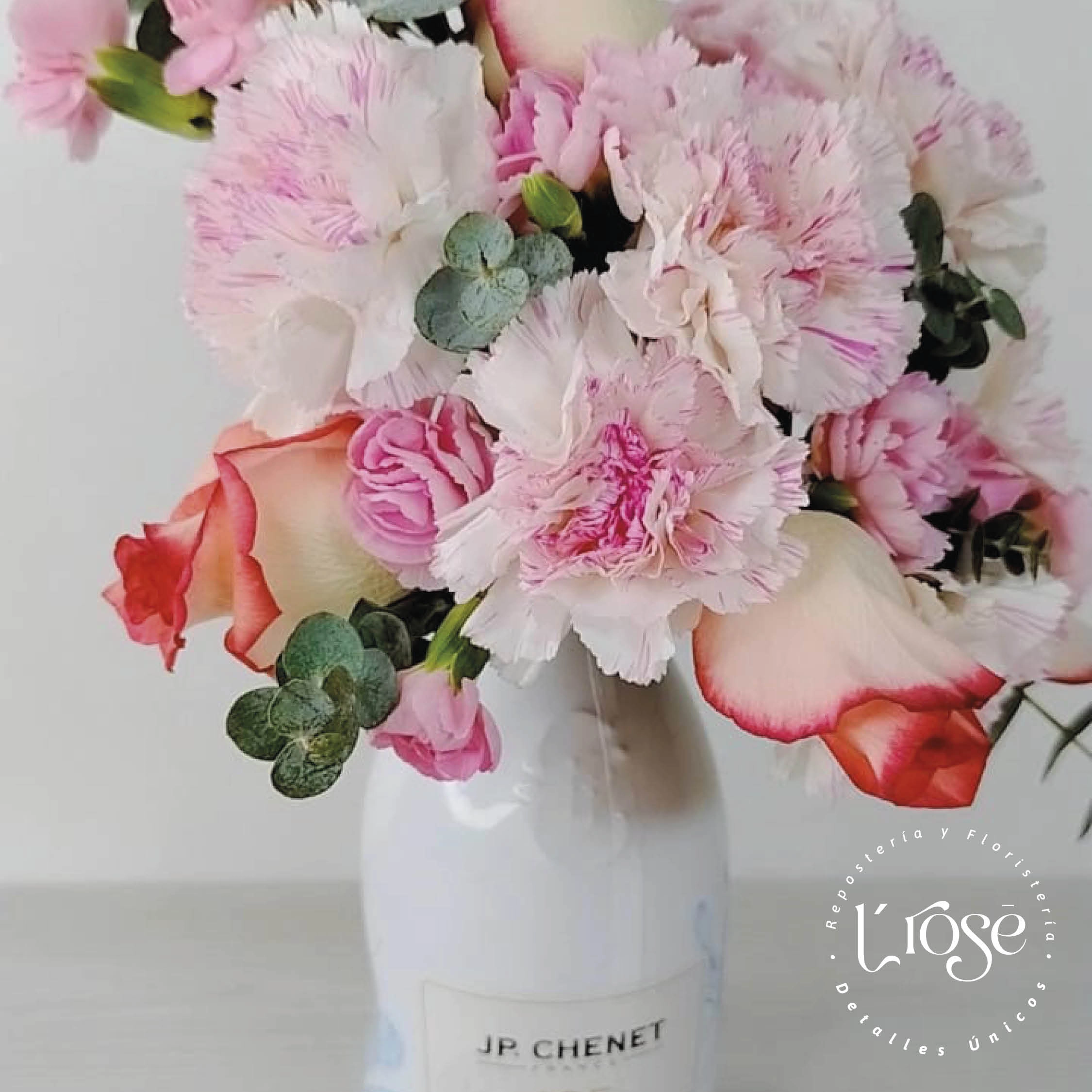 🌸🍾 Arreglo Floral con Botella JP Chenet 🍾🌸