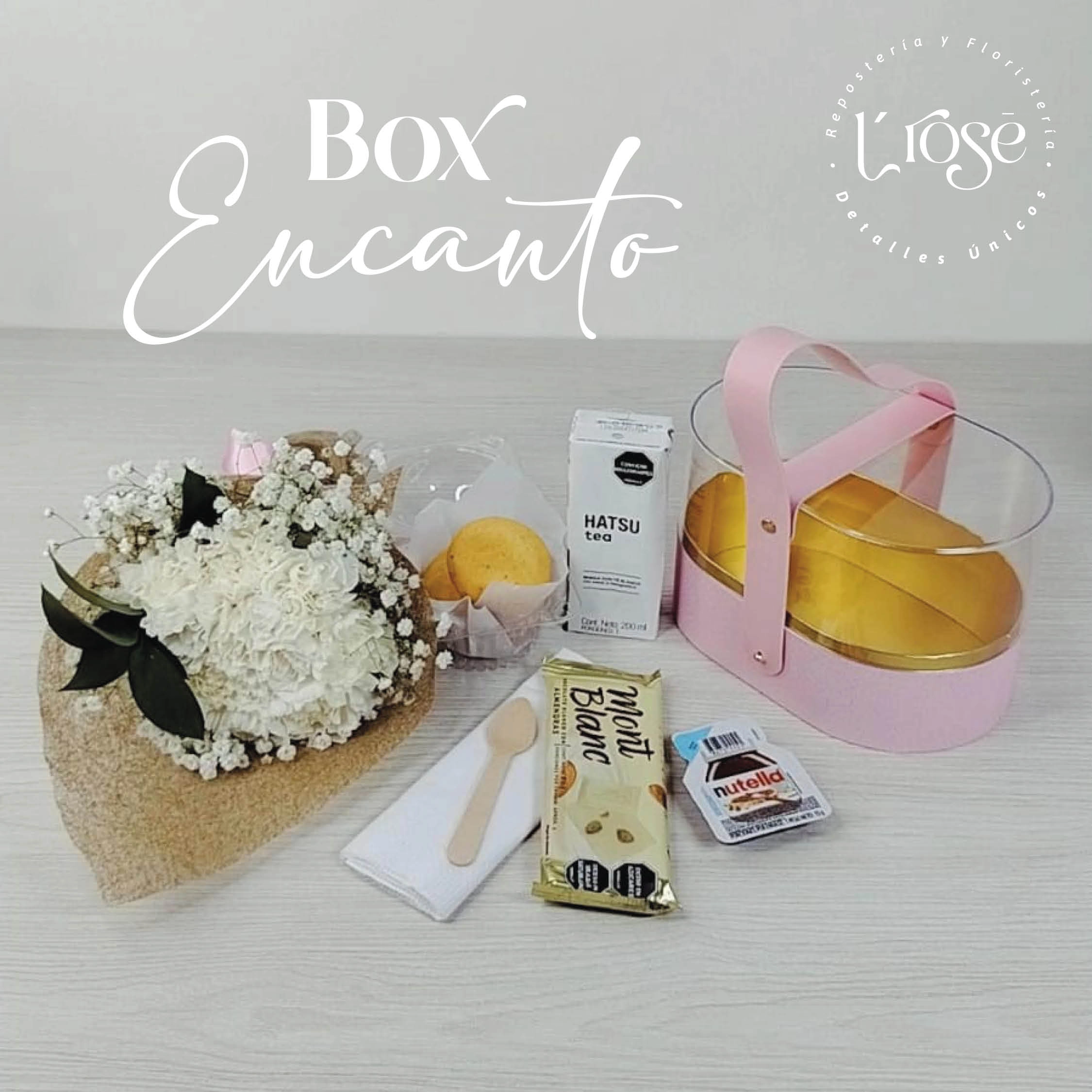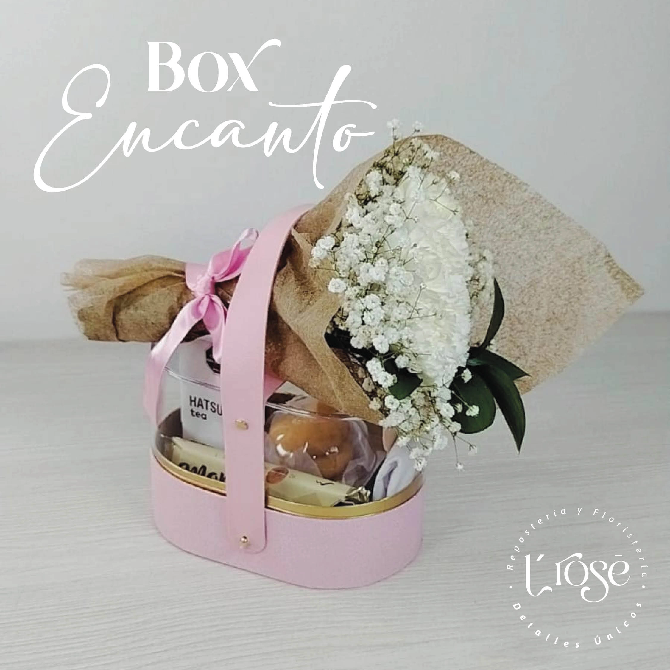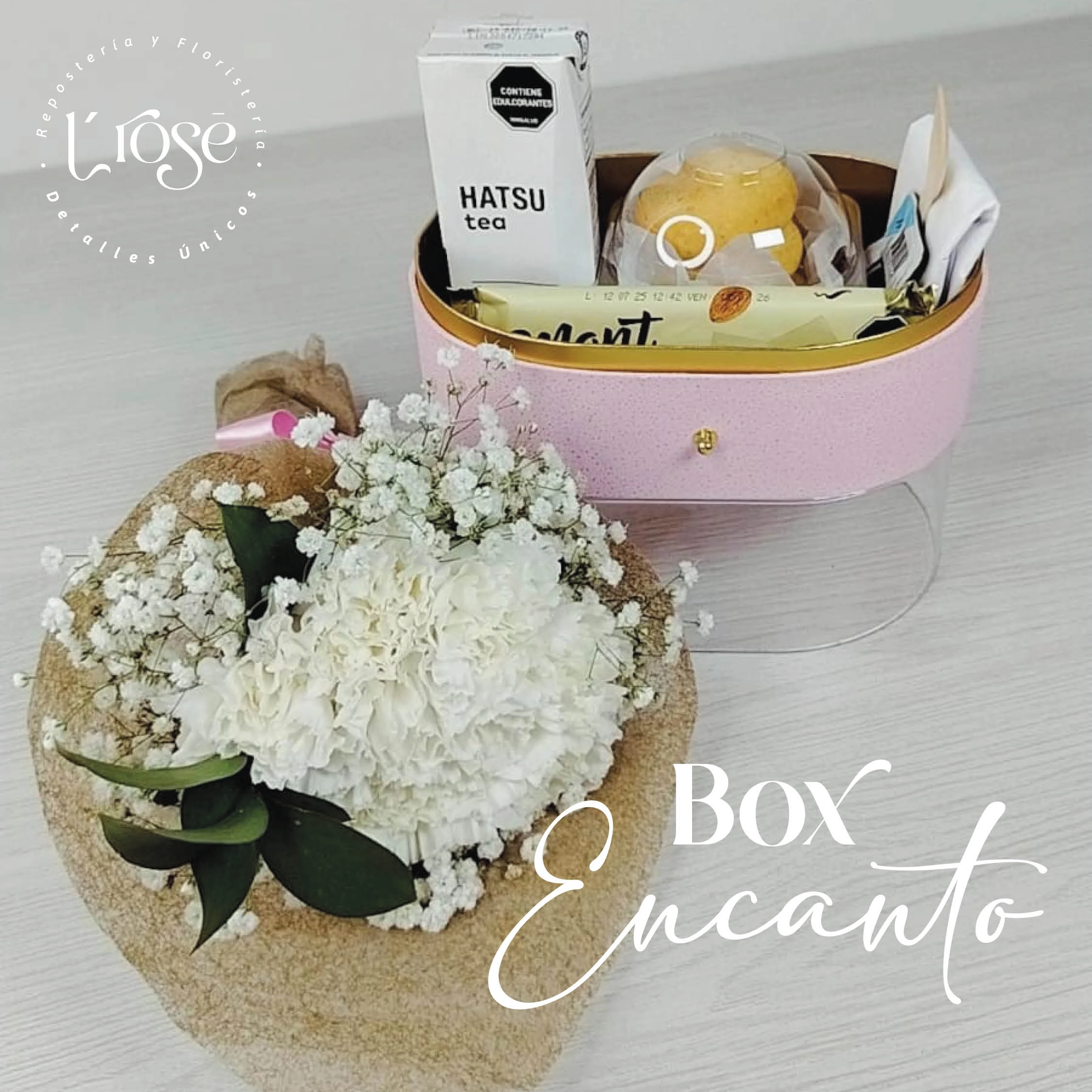 Un detalle delicado y lleno de encanto, perfecto para sorprender en una media mañana o una tarde especial. Box Encanto combina flores frescas y sabores suaves en una presentación elegante y moderna.